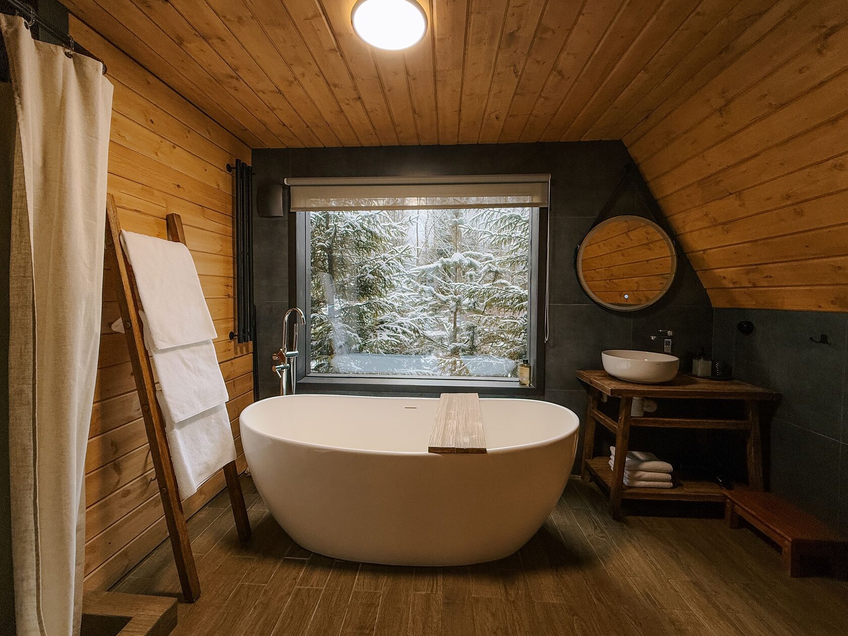 - Купель под открытым небом расслабляет и «перезапускает» голову.